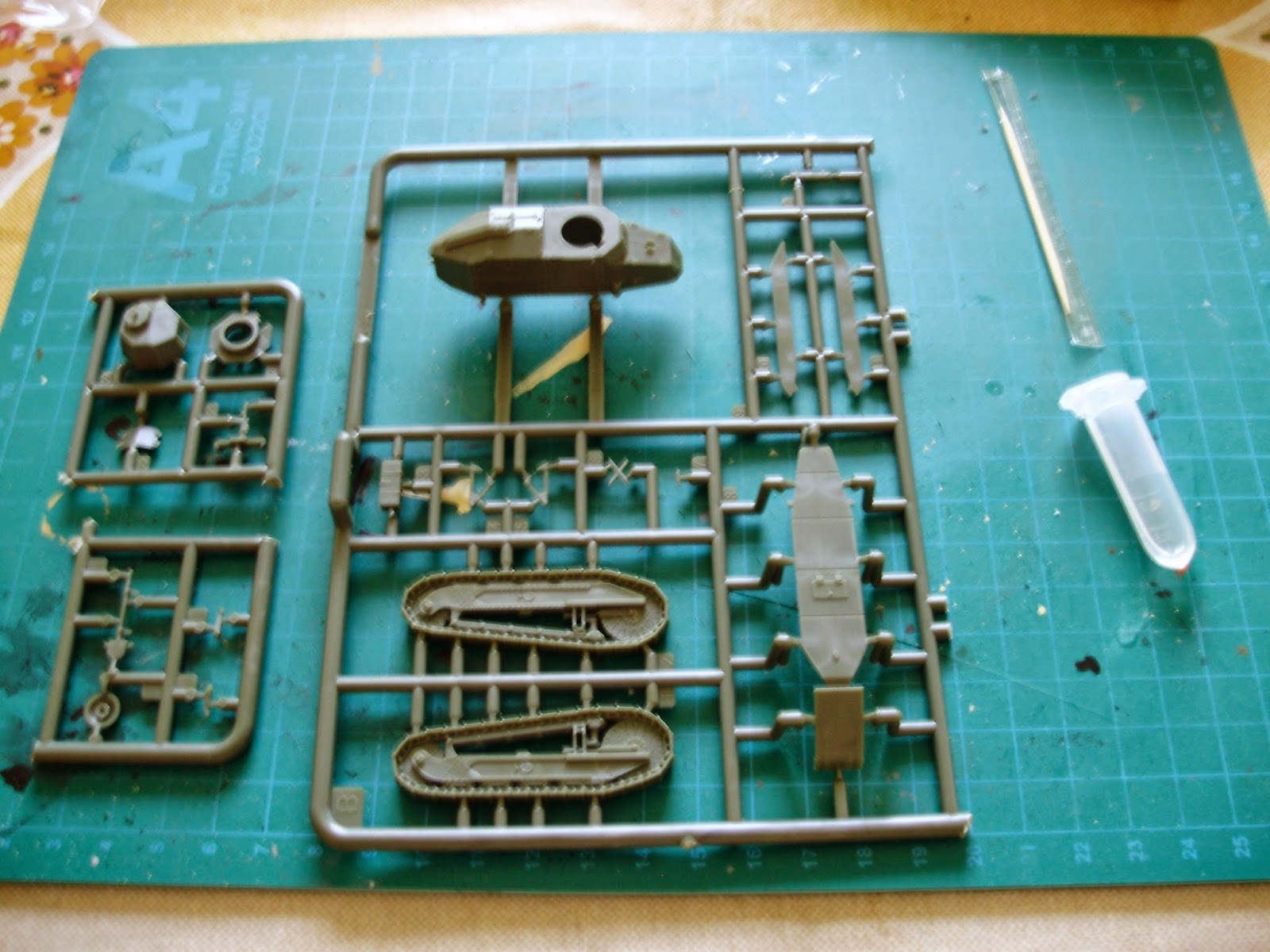 Jak widać jest naprawdę mało części. Bryła pojazdu i układ jezdny są w całosci, co dla mnie jest zaletą, choć znajdą się modelarze którym nie bedzib to pasować.