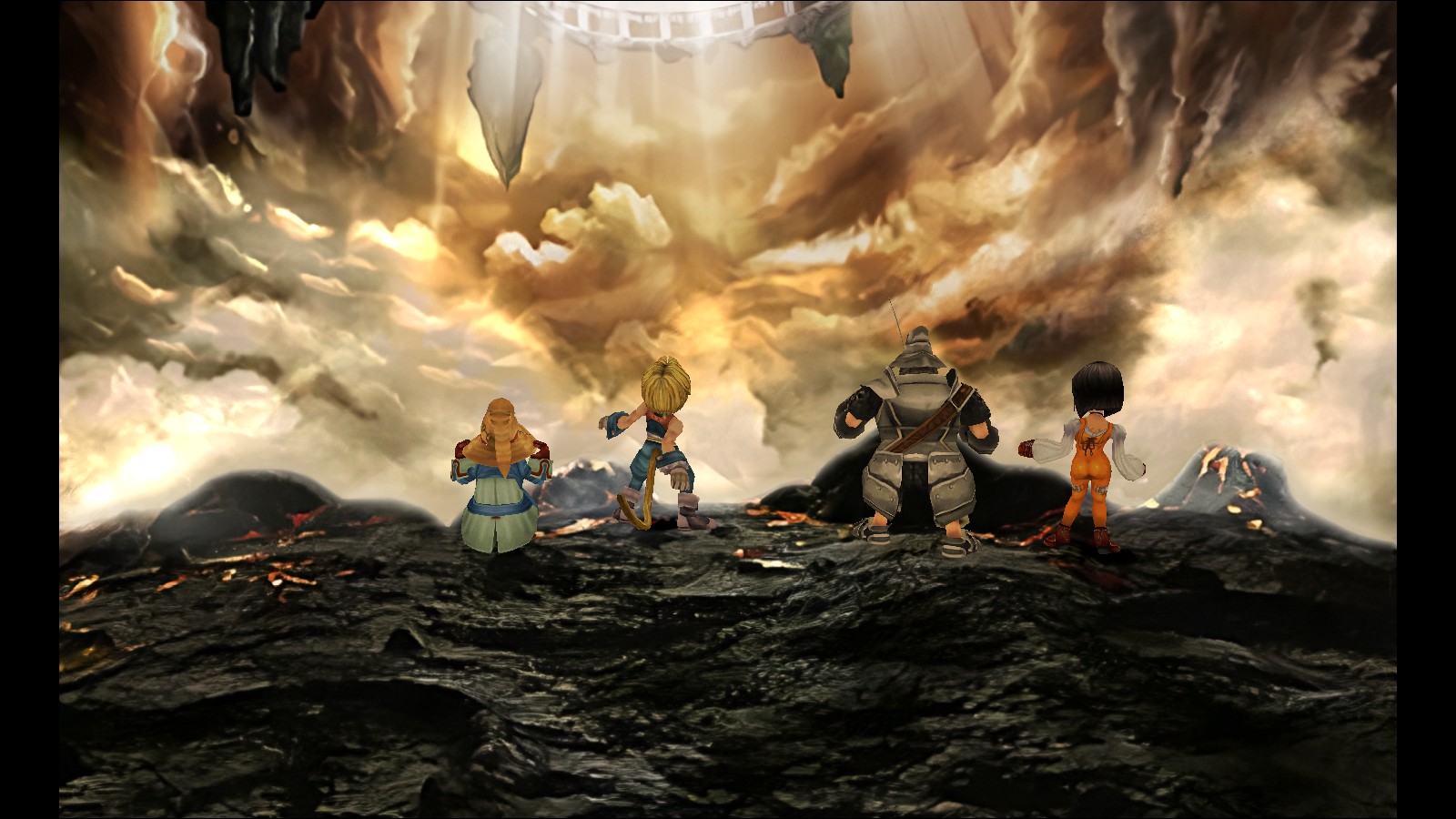 Duża w tym zasługa postaci i ich osobistych wątków. Sama "główna" historia bowiem - czyli no, nie oszukujmy się, dosyć standardowe "ratowanie świata", jak w co drugiej części - jak sympatyczna by nie była, tak na jej główny motyw składają się właśnie te pojedyncze historyjki czy dialogi członków ekipy. Dopiero to wszystko zebrane razem, pokazuje, jak spójna i niesamowicie dobrze napisana jest fabuła w dziewiątce. Rycerz Steiner, który musi nauczyć się tego, że czasami warto iść za głosem serca, a nie kodeksu. Księżniczka Garnet, próbująca doróść do władzy i odpowiedzialności z nią związanej. Szukająca rodziny Eiko i sensu w życiu Freya. Amarant, w końcu doświadczający świata innego, niż tylko i wyłącznie wiecznej walki. Quina, mogąca przeżyć przygodę życia i poznać więcej niż tylko znane sobie wcześniej smaki. Szukający sensu w życiu Vivi. I na końcu Zidane, muszący w końcu zauważyć, że może polegać na nich wszystkich, tak samo, jak oni zawsze mogli na nim. Zauważający, że nigdy nie jest sam. I nawet pomimo przerysowania każdego z nich, o wiele bardziej udało mi się we wszystkich wczuć i ich zrozumieć. Cloudowi, Cecilowi czy Butzowi się to zdecydowanie nie udało, a na pewno nie aż do takiego stopnia. O Squallu i ekipie z ósemki wolę nawet nie mówić. Najbliżej byli tutaj Laguna z FFVIII czy Cyan z FFVI, ale to dalej nie było do końca to.