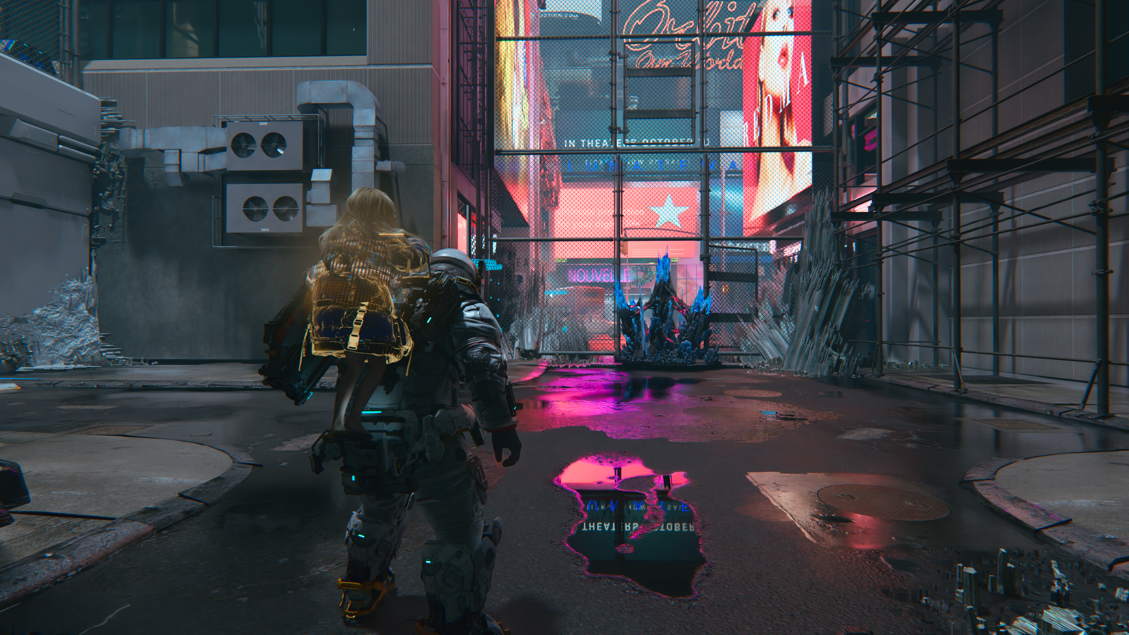Prawdziwym technologicznym triumfem pozostaje natomiast bezbłędna integracja technologii "strand-based hair rendering", która w środowisku przesyconym śledzonymi promieniami robi piorunujące wrażenie. Każdy pojedynczy kosmyk na głowie Diany to osobna geometria, która samodzielnie wchodzi w interakcję z globalnym oświetleniem i zaawansowanym systemem cieniowania, reagując na wektory ruchu z obłędną precyzją. Obliczanie fizyki setek tysięcy włosów, z których każdy rzuca i przyjmuje własny, wielokrotnie załamywany cień w ramach danej sceny, stanowi potężne uderzenie w zasoby VRAM - gra potrafi pochłonąć ponad 17 GB pamięci graficznej, gdy włączymy wszystkie efekty w rozdzielczości 4K. Kosztuje to układ mnóstwo mocy obliczeniowej, co boleśnie weryfikują wyreżyserowane zbliżenia kamery, gdzie drastyczne piki frame time'u brutalnie przypominają nam, jak ekstremalnie złożoną symulację fizyczną próbuje w czasie rzeczywistym udźwignąć karta graficzna. GeForce RTX 5080 dobrze sobie radził z aktywnym MFG x3, serwując średnio 143 klatki (w zależności od lokacji) z DLSS 4.5 w trybie jakości. Może wydajność jeszcze wzrośnie, gdy NVIDIA wyda dedykowane sterowniki dla Pragmaty.
